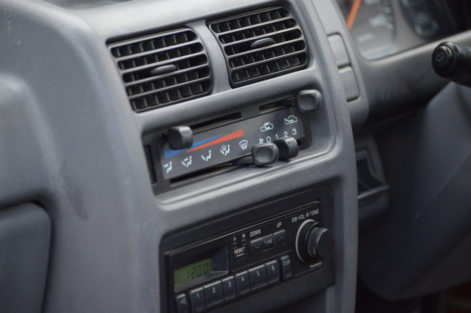 This truck is in fair condition, with all mechanical and electronic equipment in working order. The engine runs and idles smoothly, and has no issues with cold starts. Air conditioning works and blows cold. The automatic transmission engages in Park, Reverse, and Drive as usual, and drives normally. The exterior is in fair condition, and has recently been repainted to remove various stickers from the previous owner. The underside of the truck has some minor surface rust. The interior has some wear and glue remnants, as well as an aftermarket stereo installed. Seat covers have been installed, as the seats do have rips. This is a comfortable and capable little truck ready for duty abroad.