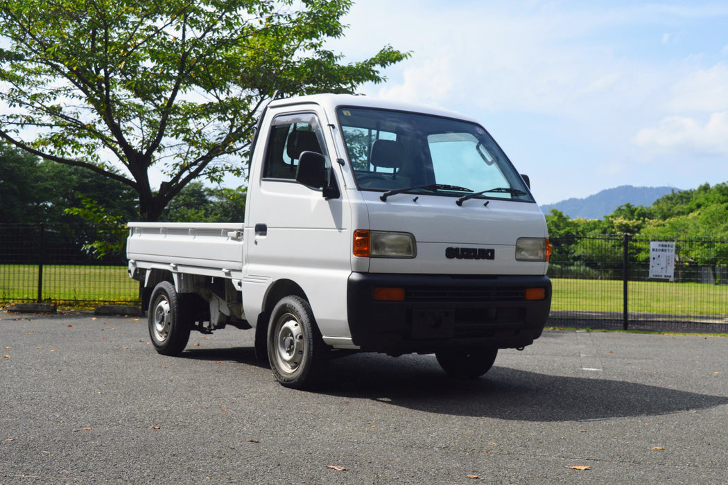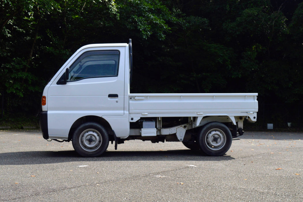 This 1998 Suzuki Carry is a great daily driver or work truck. It is equipped with a 5 speed transmission with a extra-low crawler gear, 4WD, Air Conditioning, and axle lock. The air conditioned makes it a comfy kei truck! This combination makes it a great alternative to standard UTV’s or side-by-sides; combining great off-road capability with a closed heated and cooled cabin. This truck is ready for export to the USA, Australia, Canada, New Zealand, Europe, and more. Send us a message or call +81-80-7988-4427 today to get a shipping quote or more info about the truck.